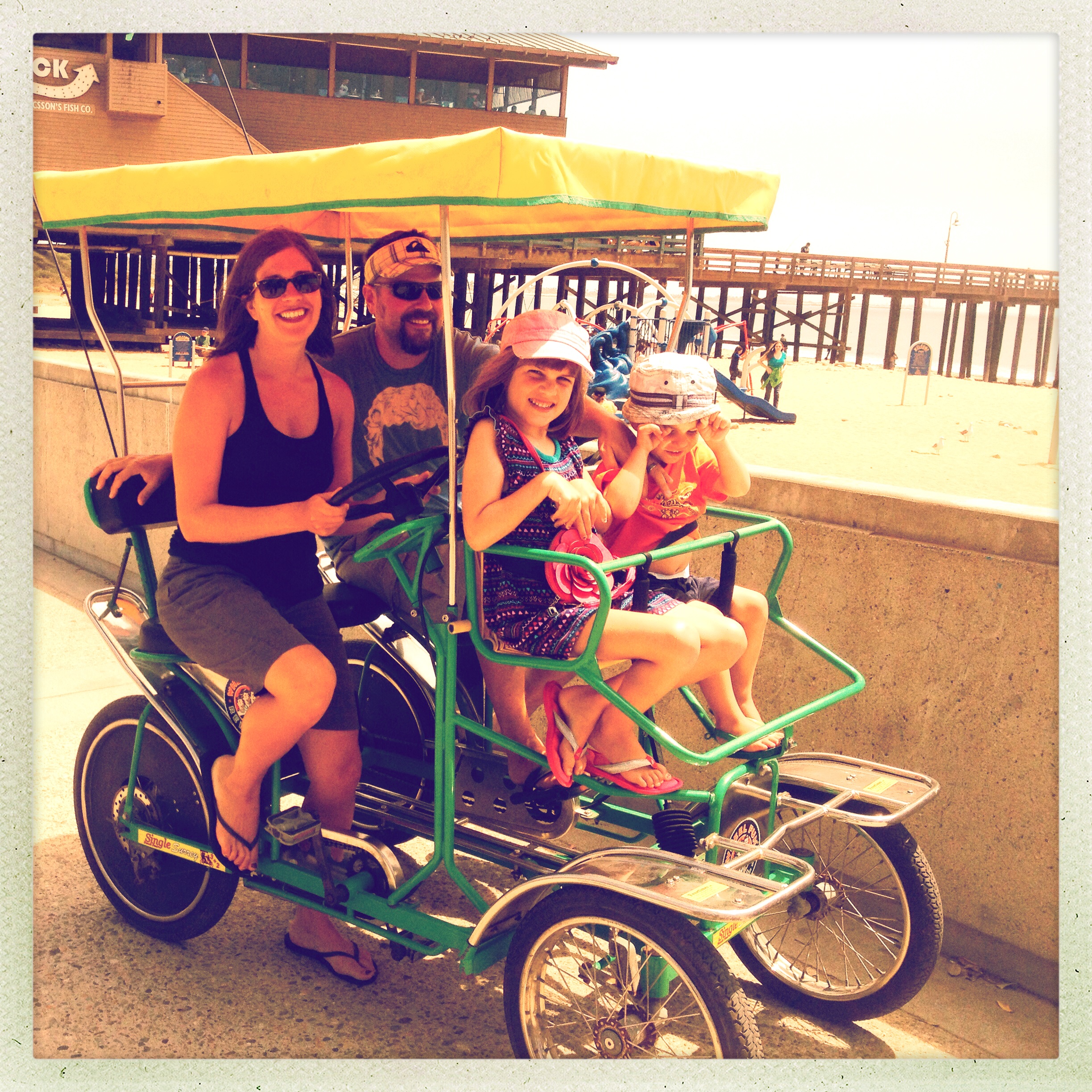 Leave a comment StandardWe had a great couple of days at Ventura Beach. Our hotel was perfectly located on the beach…with a pool…and on a floor high enough to have an amazing view of the sunset and the fireworks at the county fair. We rented a Surrey one afternoon – for a short ride – man it was harder than we thought! We met some new friends from Holland on the beach…and had fun with our sand toys!